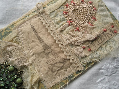 Love the wrapped heart and stitched flower. Love the vintage embroidered pieces-- look like hankies? I look at your work and think, I COULD do that, but I don't. Maybe I need to BUY a piece instead... hee hee.